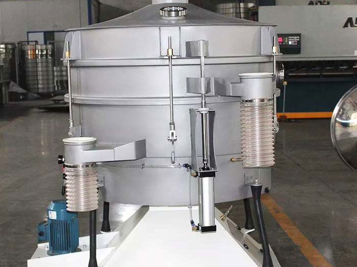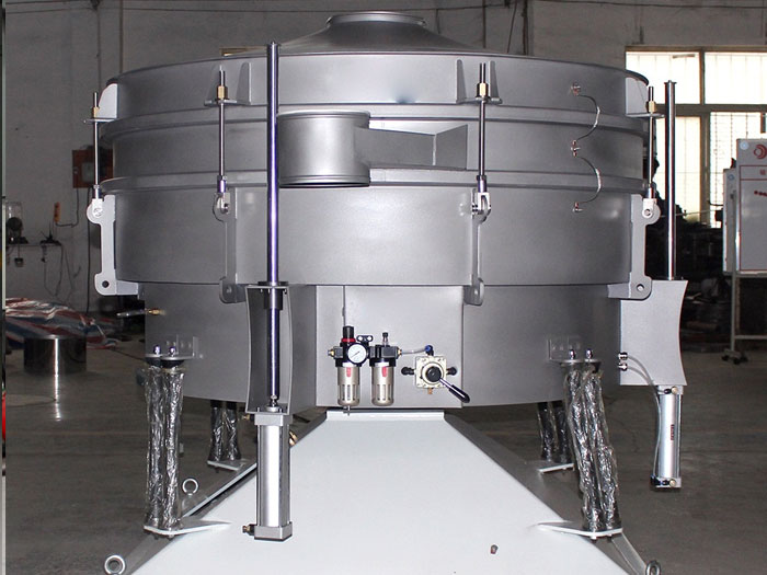 看細(xì)節(jié):進(jìn)料口 出料口 篩網(wǎng) 振動(dòng)電機(jī) 橡膠拉簧 氣動(dòng)升降裝置