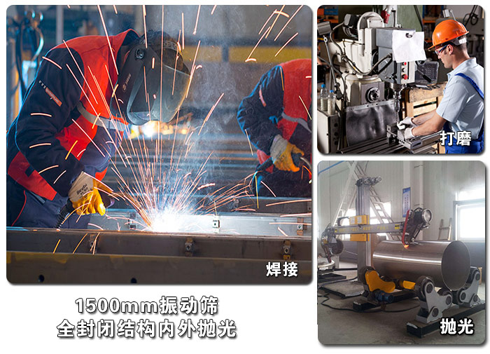 1500mm振動篩整機采用優(yōu)質(zhì)不銹鋼,內(nèi)外全拋光無毛刺,焊接之處也經(jīng)過打磨而成,,符合食品行業(yè)的衛(wèi)生要求,全封閉的結(jié)構(gòu)也保證了衛(wèi)生要求,保護環(huán)境還不會對員工的身體造成危害。
