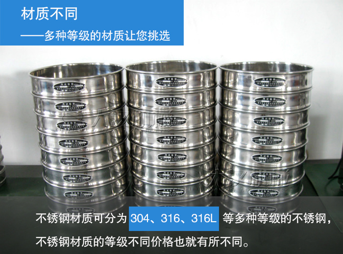 大漢機(jī)械生產(chǎn)的鹽土試驗(yàn)振動(dòng)篩上部由固定黃銅螺帽、壓板、篩蓋、篩框、中篩框、篩底、等距調(diào)節(jié)桿等部件組成,所有部件均是選用優(yōu)質(zhì)不銹鋼精制加工而成,而這種不銹鋼材質(zhì)可分為304、316、316L等多種等級(jí)的不銹鋼,不銹鋼材質(zhì)的等級(jí)不同價(jià)格也就有所不同。