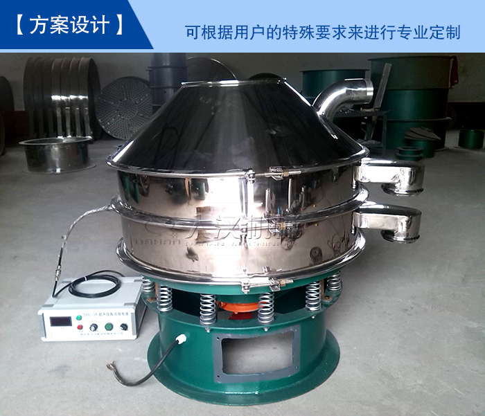 【方案設(shè)計(jì)】—— 這是大漢機(jī)械在標(biāo)準(zhǔn)型號(hào)上延伸的定做方案,可根據(jù)用戶的特殊要求來(lái)進(jìn)行專業(yè)定制(如:框體、底座加高,進(jìn)料口加料斗,出料口加閘門(mén)等)為您打造專屬的貴金屬粉末超聲波振動(dòng)篩。