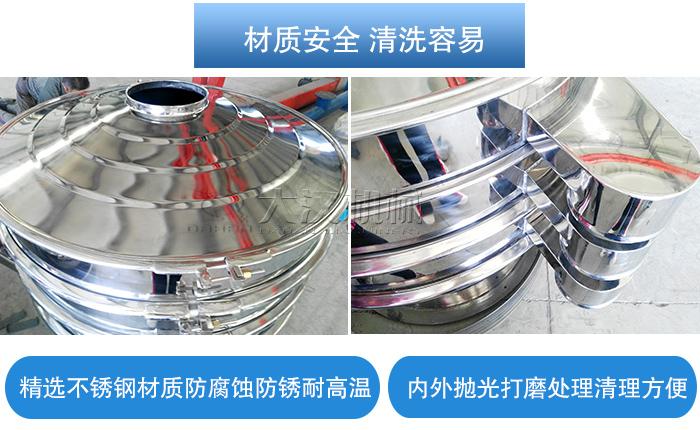 單層不銹鋼振動(dòng)篩采用不銹鋼材質(zhì)精制而成,具有良好的防腐蝕防銹功能,也可耐高溫,內(nèi)外拋光打磨處理,內(nèi)部無焊接點(diǎn),表面平整無凹陷或高低起伏的波浪面,無扭曲變形的現(xiàn)象,增加篩分后清洗消毒的難度。