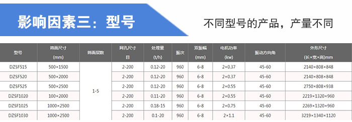 大漢機(jī)械生產(chǎn)的直線篩型號有:DZSF-515、DZSF-520、DZSF-530、DZSF-1020、DZSF-1030、DZSF-1540等標(biāo)準(zhǔn)型號,不同型號的產(chǎn)品皆是為了滿足不同用戶對于葵瓜子仁生產(chǎn)線篩分的需求,想要篩分大產(chǎn)量葵瓜子仁就需要使用大型號的直線篩,所以篩分產(chǎn)量是影響型號的重要因素。