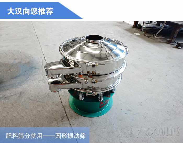 以上就是小編今天為您介紹的肥料圓形振動(dòng)篩介紹,大漢機(jī)械作為一家直銷型廠家,價(jià)格更加優(yōu)惠,為您提供標(biāo)機(jī)的同時(shí)也可以為您免費(fèi)定制!