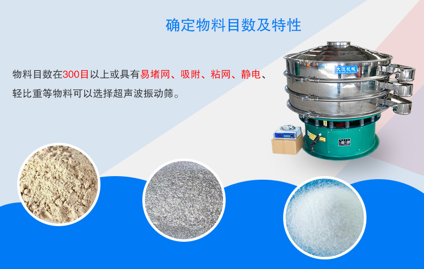 超聲波振動(dòng)篩是在旋振篩基礎(chǔ)上加裝了超聲波裝置,可以有效解決普通振動(dòng)篩在篩分粉末時(shí)的堵網(wǎng)問題,篩分精度和產(chǎn)量更高,那么超聲波振動(dòng)篩如何選型呢?接下來就為您帶來介紹: