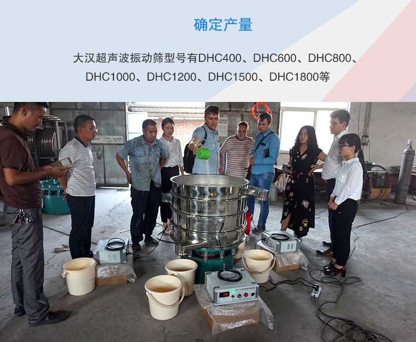 產(chǎn)量決定了超聲波振動(dòng)篩型號(hào)的選擇,大漢超聲波振動(dòng)篩型號(hào)有DHC400、DHC600、DHC800、DHC1000、DHC1200、DHC1500、DHC1800等,后綴數(shù)字代表的是篩機(jī)的篩面尺寸,篩面直徑是直接關(guān)系到產(chǎn)量,所以在選型時(shí)要明確自身對(duì)于產(chǎn)量的要求。