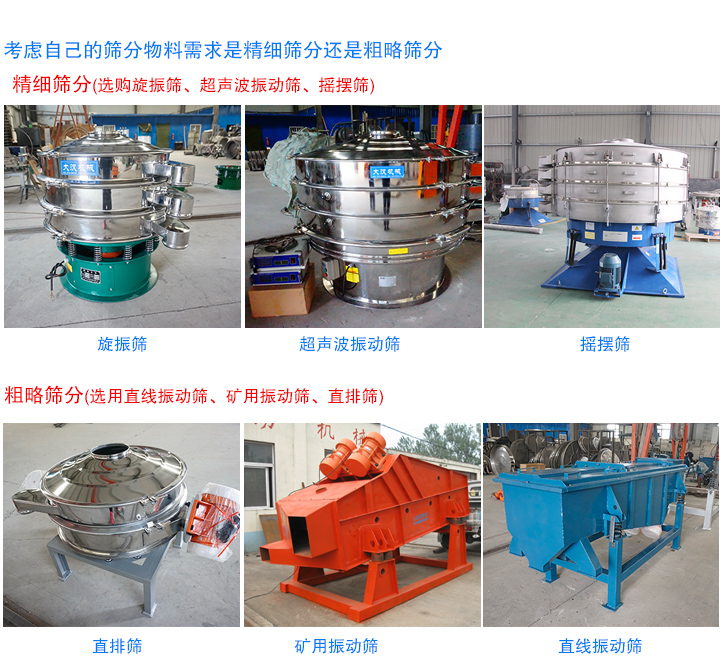 我們首先要對(duì)自己所要篩分的物料特性進(jìn)行準(zhǔn)確的評(píng)估,確定自己想要精細(xì)篩分還是粗略篩分,這樣會(huì)達(dá)到事半功倍的效果。如果是精細(xì)篩分,我們大漢推選購(gòu)旋振篩、超聲波振動(dòng)篩、搖擺篩等振動(dòng)篩;如果是粗略篩分,選用直線振動(dòng)篩、礦用振動(dòng)篩、直排篩等都適合。