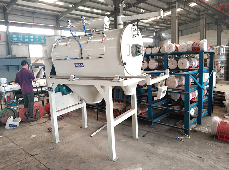 氣旋篩網(wǎng)為圓筒狀,置于機(jī)體內(nèi),物料通過螺旋輸送系統(tǒng)后,和氣流混合、霧化進(jìn)入網(wǎng)筒內(nèi);通過網(wǎng)筒內(nèi)風(fēng)輪葉片使物料同時(shí)受離心力和旋風(fēng)推進(jìn)力,從而近使物料噴射過網(wǎng),由細(xì)料排出口排出,不能過網(wǎng)的物料沿網(wǎng)筒壁從粗料排出口排出。